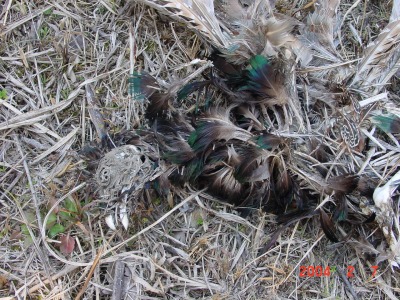 【右】キジのオスみたいです。捕食者は真っ先に腸(はらわた)食べます。