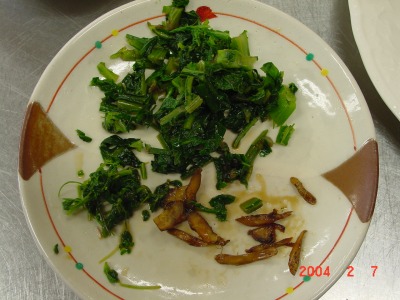 【左】タンポポの根のキンピラとハルノノゲシのおしたしです。