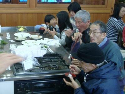 【右】我がスタッフも味見をしています。プロが調理したので大満足でした。
