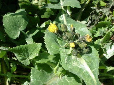 【右】オニタビラコです。おしたしでもテンプラにも利用できます。こちらの種は風で飛びますが、コオニタビラコは風で飛びません。