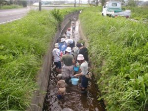 今年も、モクズガニが大小合せて神田川にたくさんいるのに少々戸惑い感激する。尚、昨年まで見受けられた、モツゴ・チチブ・ヨシノボリ・ウキゴリの捕獲なし。この川も三面張りだが砂や土砂が川床に溜まり草等が生えると魚の棲める環境が出来そうだし他の生物繁殖しそうだ。上流や周辺に大きな環境変化は見当たらず。地域文化センタ−近くの用水路にジャンボタニシが異常繁殖していた。