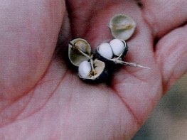 【右】ナンキンハゼの種子の周りの白いのは蝋です。蝋はロウソクや石鹸の原料に使われます。