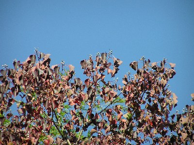 【左】ナンキンハゼの実をヒヨドリが食べにきていました。。