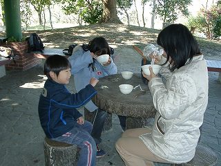 絶好の観察日和に恵まれた。今回は本年5月から定点観察サイトと位置付けている梅の館の西側域を選択し、観察(調査)に入る。幸い一般市民参加者4名並びに新入会員杉山 央祐さんの初参加頂き、生き物観察・分ち合いを行ないつゝ摘んだ(春の)七草を、用意した調理具で、具たくさんの粥に皆で舌鼓を打ちながら和気藹々とふりかえり、下界の師走の慌ただしさから暫しの開放感を味わった。