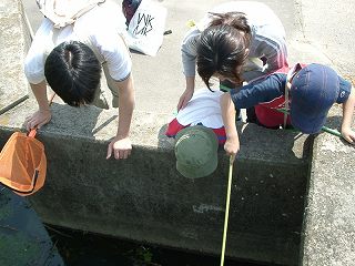 【右】水路の中に何かいるみたいです。逃げられてしまいました。