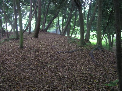 【左】兵糧攻めの対策に植えられたといわれているマテバシイ。