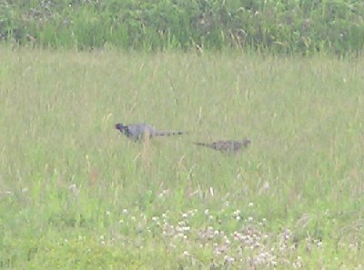 【左】休耕田の中でキジが恋をしていました。