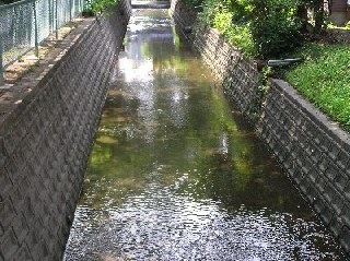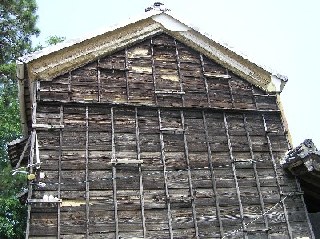 【左】古い倉庫です。火災の時に板壁が取り外せるようになっていました。   【右】町の中心を流れている日長川です。以前は蛇行していたそうです。