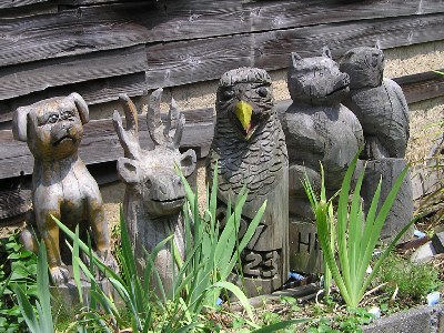 【右】間伐材をチエンソーで彫刻したものが飾ってありました。