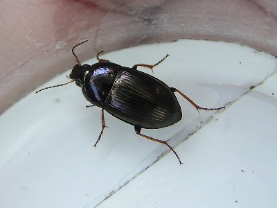 【左】ユミアシゴミムシダマシが樹皮にいました。