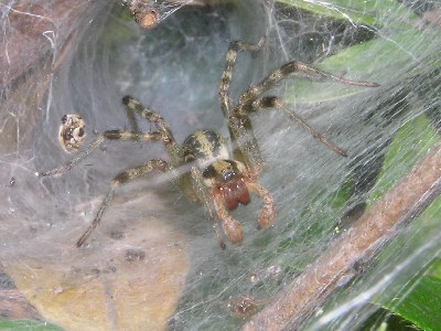 【右】声をかけたらクサグモが顔を出しました。
