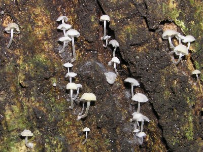 【左】センボンクヌギタケ(食毒不明)が群生していました。