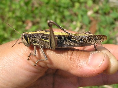 【左】ツチイナゴがチガヤの中にいました。