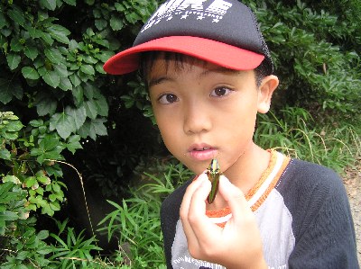 【左】タマムシ(玉虫)が飛んできました。始めてみた人がたくさんいました。