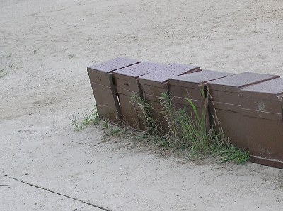 【左】野球場のベンチです。踏みつけのないところは草がよく生えます。