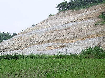 【左】500〜200万円前にあった東海湖の湖底にたまった泥、砂、火山灰が観察できます。