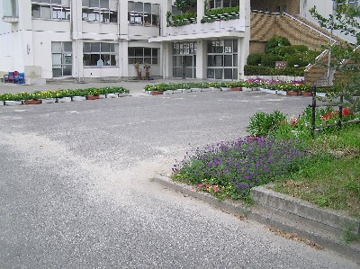 【右】舗装の上にプランターを置くと気温を下げる効果があるみたいです。舗装→地面→草地→林→森の準で気温を下げるそうです。