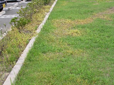 【右】芝生の中に生えた雑草を選択しながら除草薬剤を使用したみたいです。芝生以外の草で私たちは迷惑を被っているのでしょうか。