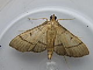 【左】 鳴く虫を探しに出かけました。    【右】アカウスグロノメイガです。イネ科を食べます。