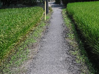 【中】土の土手のほんの一部舗装されています。地球温暖化を防止するために少ない舗装はいいことです。