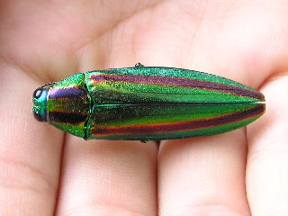 【右】サクラの木下にタマムシの死体が有りました。タマムシはサクラの樹を食べます。