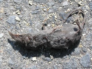 【中】少し離れた、東海市との境でアスファルト道でジネズミの死体を見つけました。モグラの仲間で最近少なくなりました。