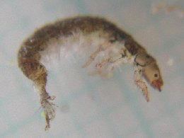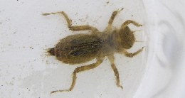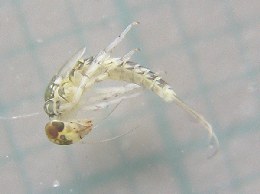 【右】コカゲロウ。腹部の横にひらひらした卵形のエラがあります