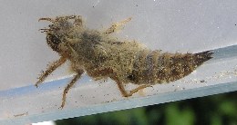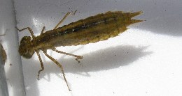 【右】シオカラトンボのヤゴです。幼虫のヤゴの時も成虫のトンボのときも植物でなく動物を食べます。