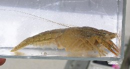 【右】アメリガザリガニ(北アメリカ)。ウシガエルの餌用として輸入した結果、現在では手に負えないほど繁殖してしまいました。この影響で、知多半島に生息しているトウキョウサンショウウオが危機になっています。