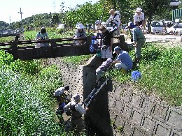 【中】子供たちもハシゴを使って自力でで川に降りました。