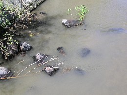 【中】川の中に石ころがありました。これも、生き物の産卵場所や隠れ場所になってたくさんの種類の生き物が住めます。