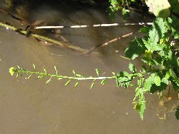 【中】水田の畦にも生えるスカシタゴボウです。同じような草でイヌガラシは果実が細長いので区別できます。