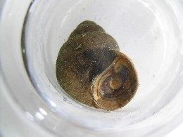 【中】スクミリンゴガイ(南米原産)。養殖用に輸入しましたが、臭いが悪いので商品にならなく、放置したものが増殖し、イネなどに被害を与えています。