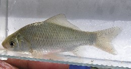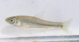 【右】オイカワ。琵琶湖からの稚アユ放流にまじって各地に広がったといわれています。