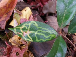 【右】字書き虫、絵描き虫などといわれるハモグリバエの仕業です。