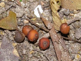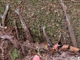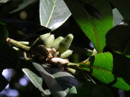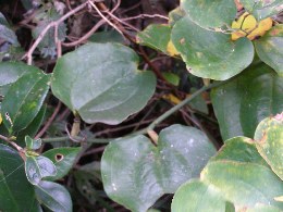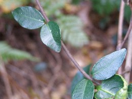 【左】ミミズバイの枝に実がついていました。暖かい地方の植物は枝に花を付け、実をつけます。