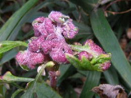 【左】ヨモギハベリマキフシはヨモギクダナシアブラムシによって作られる虫こぶです。
