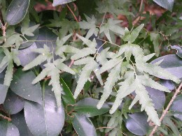 【右】カクレミノの実も小鳥たちの食べごろになってきました。