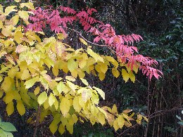【右】イヌビワ(黄色)とハゼ(赤)。