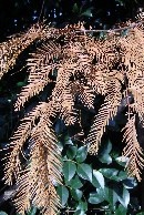 【右】化石植物のメタセコイヤの樹形と葉っぱです。
