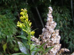 【左】セイタカアワダチソウの花と綿毛がついた種を同時に見ました。