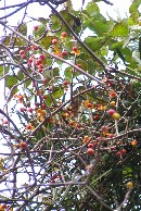 【中】ツルウメモドキの実を小鳥が食べて食べ損なったのが地面一面に落ちていました。
