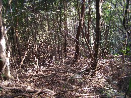 【左】照葉樹が成長し、光線不足になったので、メダケが枯れたみたいです。