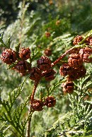 【中】低いところにヒノキの実がありました。手に取ると種子がたくさん出てきました。種子は薄く軽くできていました。