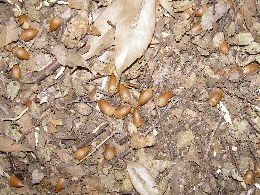 【右】スダジイのドングリがたくさん落ちていました。少しいただいて炒って食べることにしました。