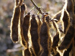 【中】クズのサヤを逆光線で見ると毛が金色に光りきれいでした。