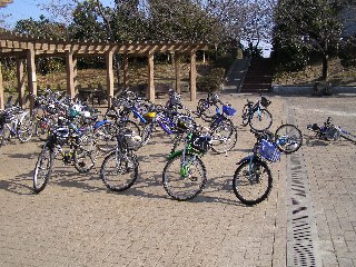 【中】サッカーの練習に来た子供たちの自転車です。置き場所と整頓はどうでしょう。