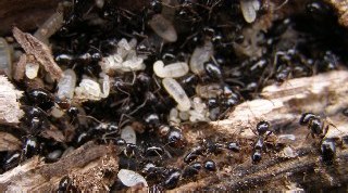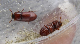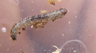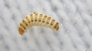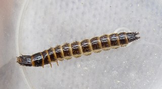【中】ユミアシゴミムシダマシの幼虫。枯れ木を食べています。