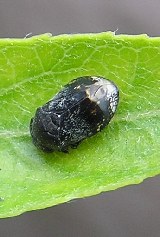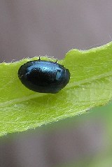 【左】ヤナギにクロヒラタヨコバイ(成虫)とヤナギルリハムシ成虫(右)がいました。