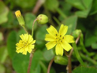 【右】ヤブタビラコ(左)とコオニタビラコ(右)が水田に生えていました。